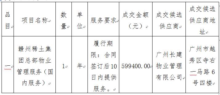 贛州稀土集團(tuán)總部物業(yè)管理服務(wù)項目(項目編號:GZJD2017-GZ-F008)競爭性磋商的成交結(jié)果公告