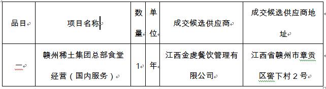 贛州稀土集團總部食堂經營項目(項目編號:GZJD2017-GZ-F007)招商的成交結果公告