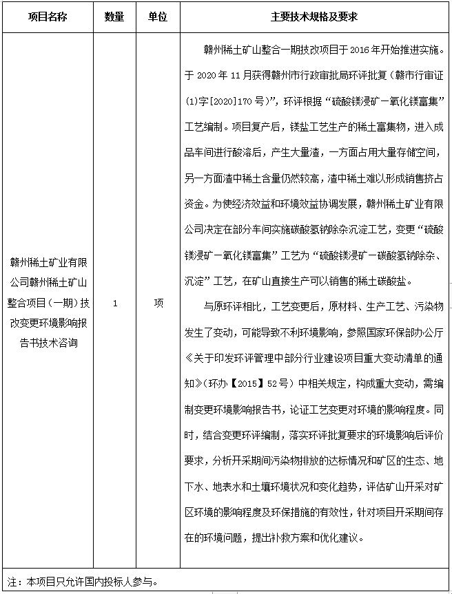 贛州稀土礦業(yè)有限公司贛州稀土礦山整合項目(一期)技改變更環(huán)評(項目編號:JXRP2023-ZC-G016)的公開招標公告