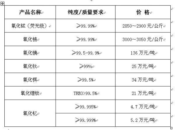 2010年11月上半月贛州稀土礦業(yè)公司單一氧化物報(bào)價(jià)