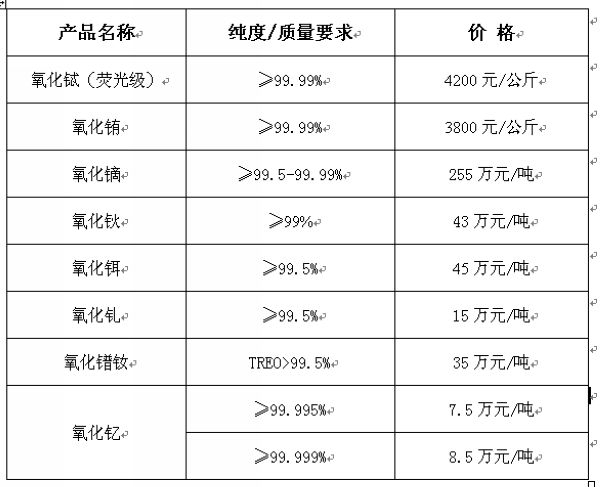 2011年3月上半月贛州稀土礦業(yè)公司單一氧化物報(bào)價(jià)