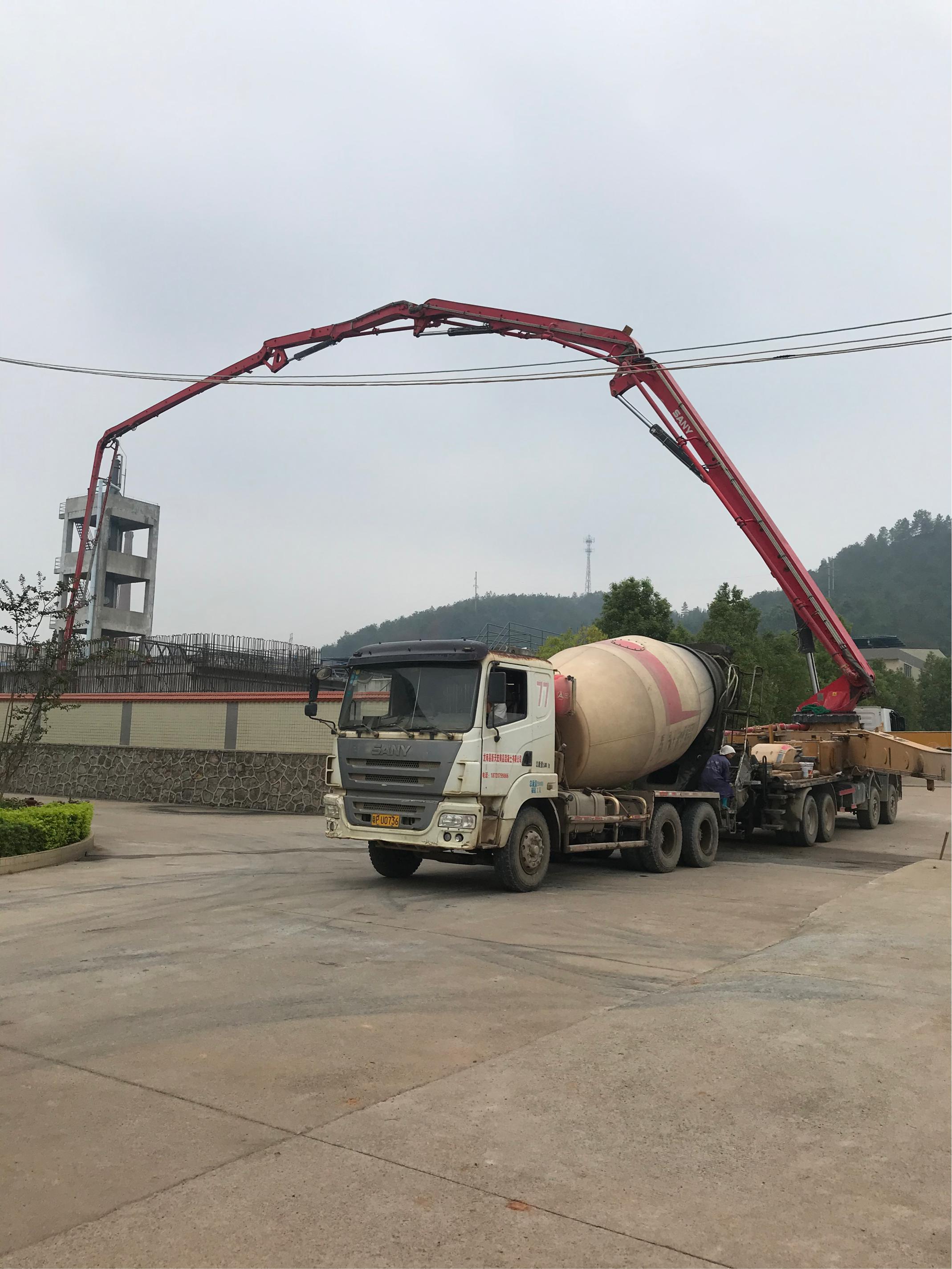 灌漿機(jī)正在對(duì)廢水池剪力墻進(jìn)行澆注