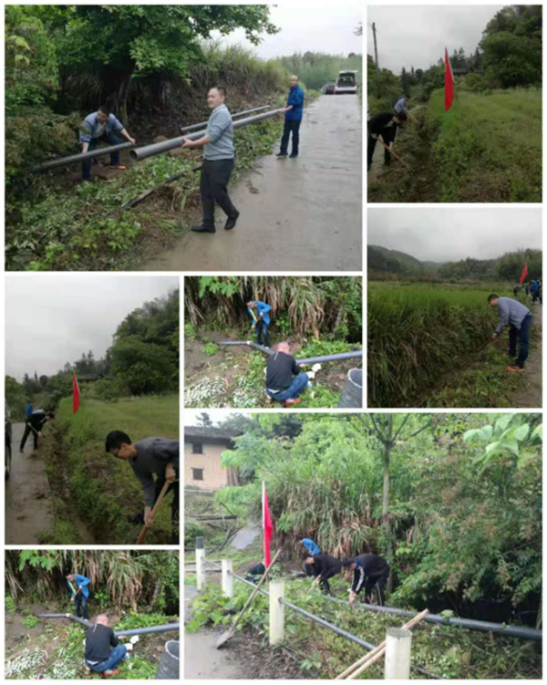 黨員們冒雨進行水溝清淤及接通灌溉水管作業(yè)。經大家齊心協力,農田水渠全部清理完成,灌溉水管全部順利接通,為周邊農戶完成春耕提供了有利條件。大家以實際行動展現了黨員干部的責任與擔當。
