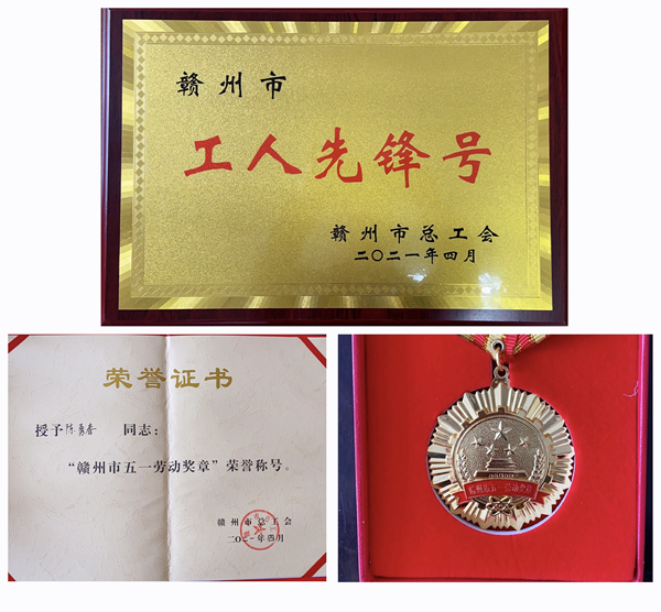 近日,贛州市總工會(huì)召開(kāi)慶祝2021年“五一”國(guó)際勞動(dòng)節(jié)暨表彰大會(huì),贛州稀土礦業(yè)定南分公司榮獲“2021年贛州市工人先鋒號(hào)”稱號(hào)、龍南友力稀土科技開(kāi)發(fā)有限公司陳勇春同志榮獲“2021年贛州市五一勞動(dòng)獎(jiǎng)?wù)?rdquo;稱號(hào)。