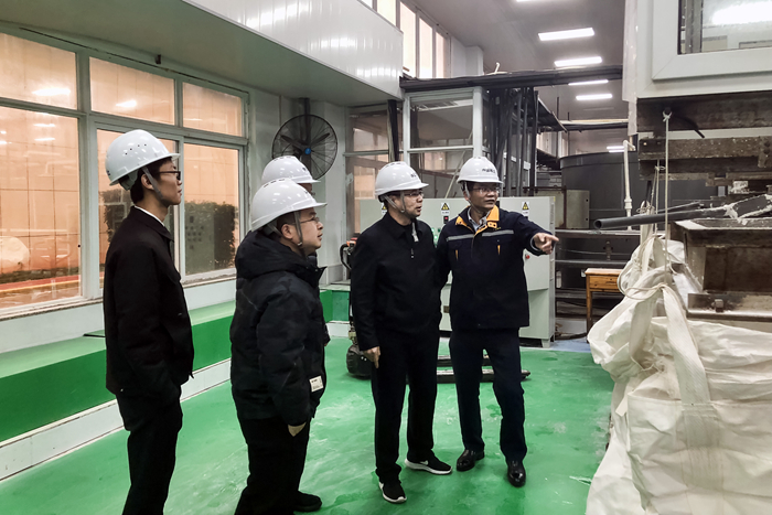 雨未歇,步不止。2月5日,黃華勇先后來到金源稀土廠區(qū)、江華稀土一工區(qū),一路走一路看,學(xué)習(xí)金源公司在廠區(qū)布局、產(chǎn)業(yè)協(xié)同、文化建設(shè)和現(xiàn)場管理等方面的經(jīng)驗做法。金源公司副總經(jīng)理張彤、黎翻陪同。