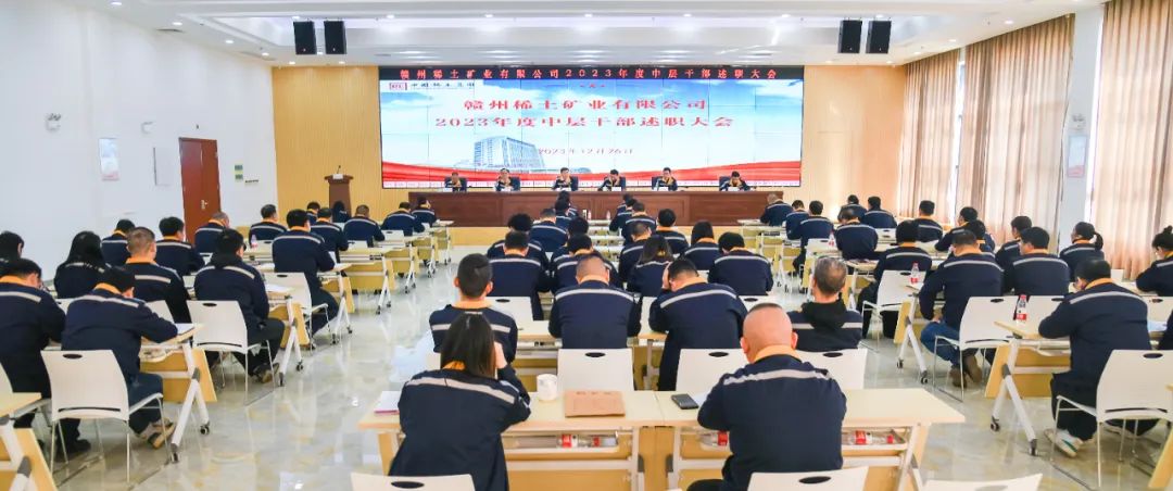 12月26日,贛州稀土礦業(yè)有限公司召開2023年度中層干部述職大會,公司黨委書記、董事長黃華勇出席會議并講話。公司黨委副書記、總經(jīng)理葉春林主持會議,公司領(lǐng)導(dǎo)李程亮、何巧燕、鐘瑞林、何結(jié)鋒參加。