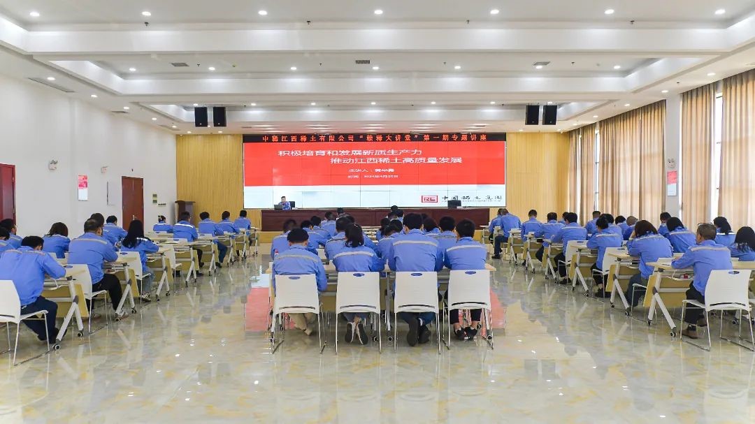 4月26日,中稀江西稀土有限公司(以下簡稱江西稀土)舉辦“贛稀大講堂”第一期專題講座。為認(rèn)真學(xué)習(xí)習(xí)近平總書記關(guān)于發(fā)展新質(zhì)生產(chǎn)力的重要論述精神,通過培育和發(fā)展新質(zhì)生產(chǎn)力,扎實(shí)推進(jìn)構(gòu)建江西區(qū)域現(xiàn)代稀土產(chǎn)業(yè)體系,公司黨委書記、董事長黃華勇以“積極培育和發(fā)展新質(zhì)生產(chǎn)力,推動江西稀土高質(zhì)量發(fā)展”為主題作專題講座,公司領(lǐng)導(dǎo)李程亮、何巧燕、鐘瑞林、何結(jié)鋒參加。