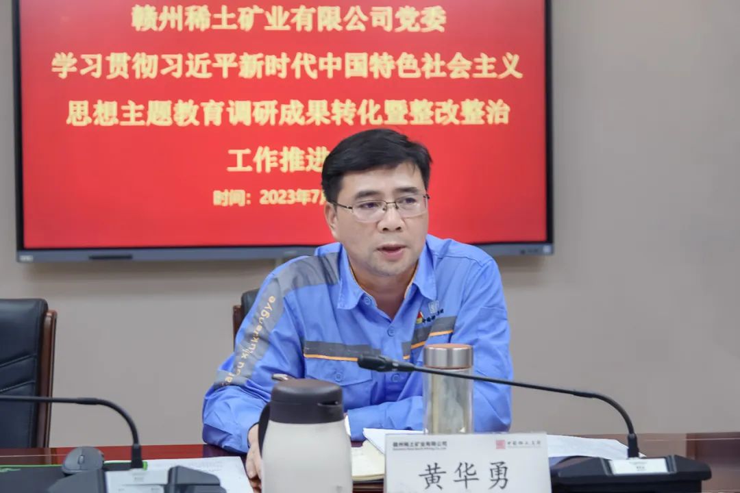7月27日,贛州稀土礦業(yè)有限公司黨委召開主題教育調(diào)研成果轉(zhuǎn)化暨整改整治工作推進(jìn)會,公司黨委書記、董事長黃華勇主持會議并講話,集團(tuán)公司黨委第三巡回指導(dǎo)組成員黃宗東、杜凱到會指導(dǎo),公司黨委副書記、總經(jīng)理葉春林及公司其他領(lǐng)導(dǎo)班子成員參加會議。