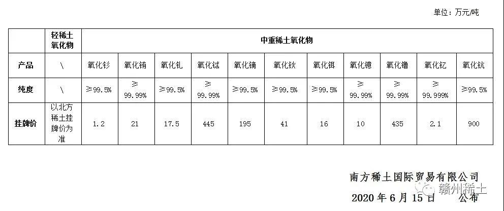 6月15日稀土市場(chǎng)行情