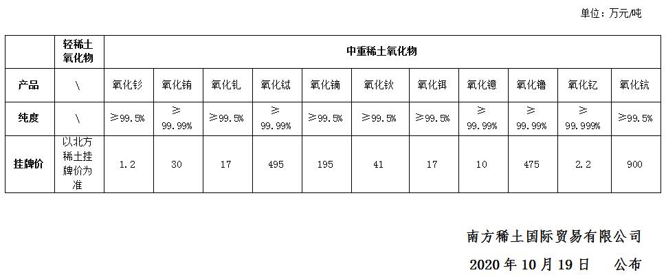 10月19日稀土市場行情
