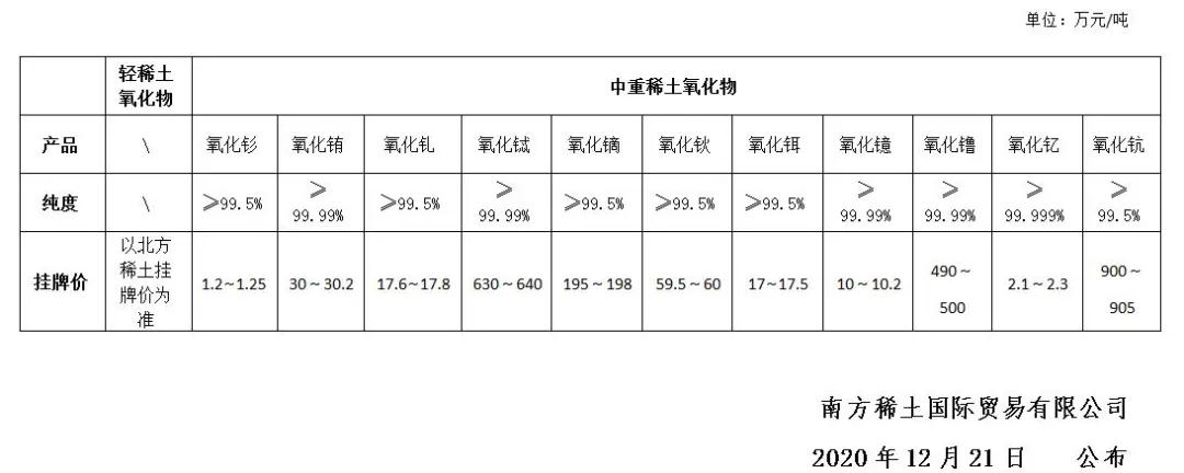 12月21日稀土市場行情