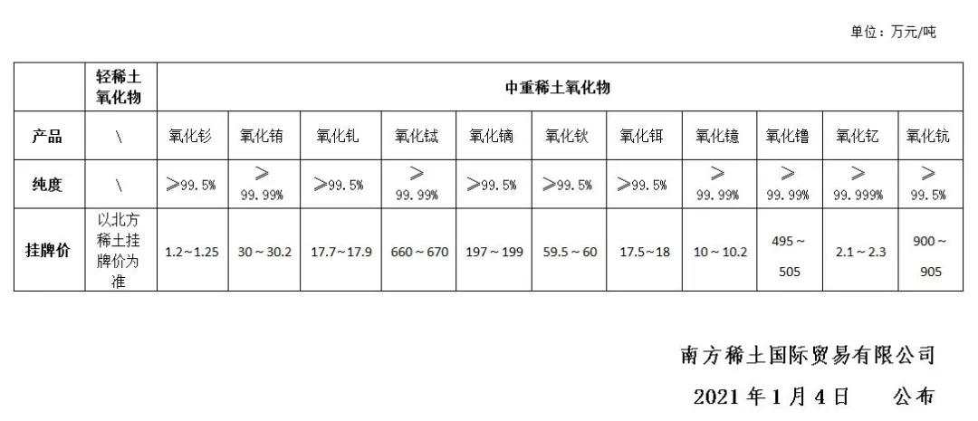 2021年1月4日稀土市場行情