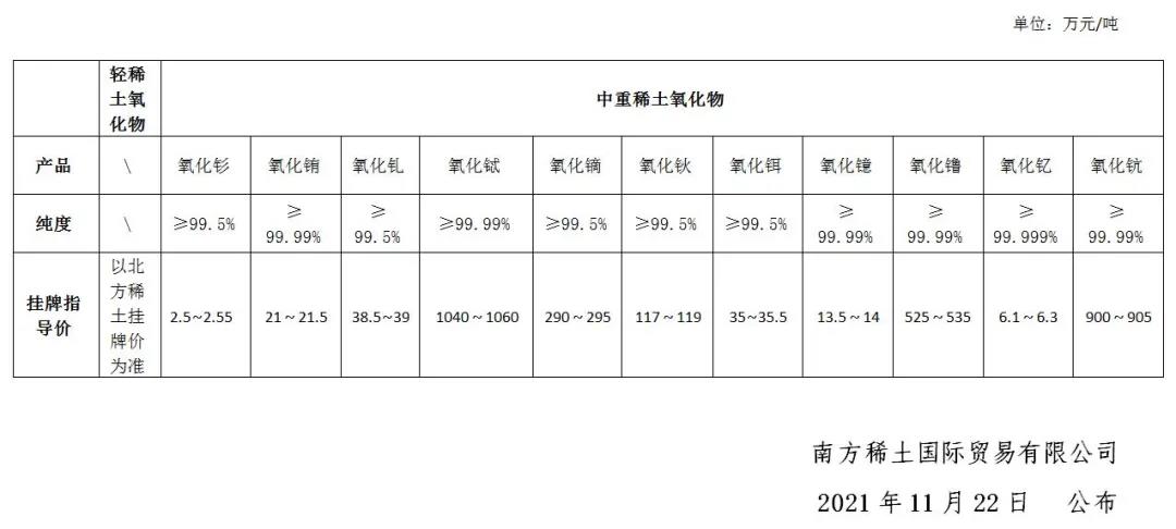2021年11月22日稀土氧化物掛牌指導(dǎo)價(jià)