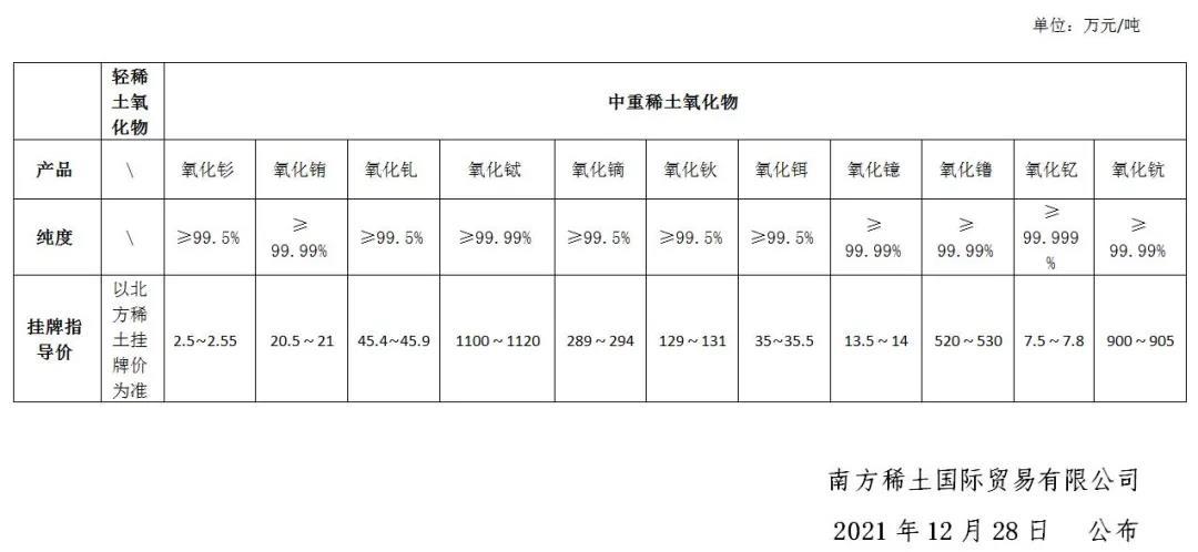 2021年12月28日稀土氧化物掛牌指導(dǎo)價