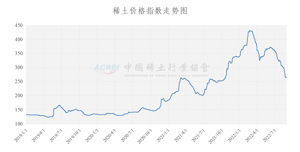 指數(shù)計算:稀土價格指數(shù)是由基期和報告期的交易數(shù)據(jù)計算組成,基期選用2010年全年的交易數(shù)據(jù),報告期選用全國20多家稀土企業(yè)每天實時交易數(shù)據(jù)的平均值,代入稀土指數(shù)價格模型計算得出。(基期指數(shù)為100)來源:中國稀土行業(yè)協(xié)會