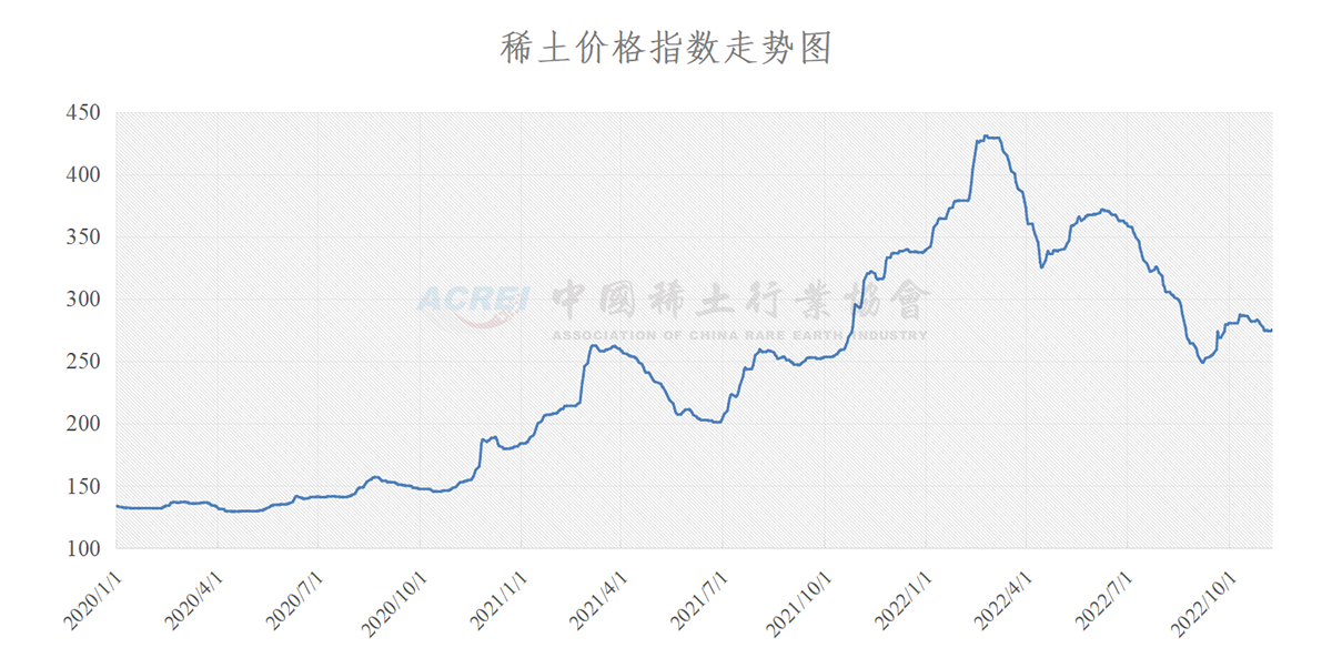 指數(shù)計算:稀土價格指數(shù)是由基期和報告期的交易數(shù)據(jù)計算組成,基期選用2010年全年的交易數(shù)據(jù),報告期選用全國20多家稀土企業(yè)每天實時交易數(shù)據(jù)的平均值,代入稀土指數(shù)價格模型計算得出。(基期指數(shù)為100)來源:中國稀土行業(yè)協(xié)會