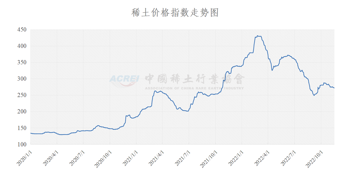指數(shù)計算:稀土價格指數(shù)是由基期和報告期的交易數(shù)據計算組成,基期選用2010年全年的交易數(shù)據,報告期選用全國20多家稀土企業(yè)每天實時交易數(shù)據的平均值,代入稀土指數(shù)價格模型計算得出。(基期指數(shù)為100)來源:中國稀土行業(yè)協(xié)會