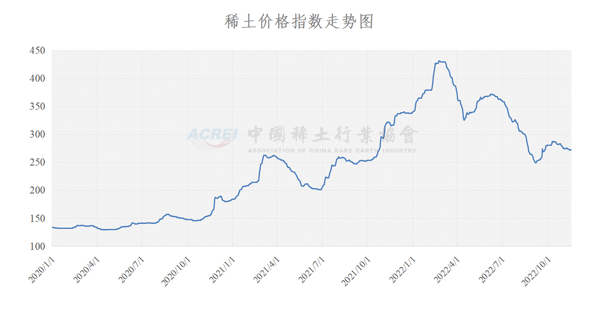 指數(shù)計算:稀土價格指數(shù)是由基期和報告期的交易數(shù)據計算組成,基期選用2010年全年的交易數(shù)據,報告期選用全國20多家稀土企業(yè)每天實時交易數(shù)據的平均值,代入稀土指數(shù)價格模型計算得出。(基期指數(shù)為100)來源:中國稀土行業(yè)協(xié)會