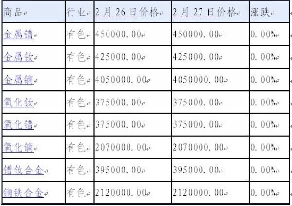 2013年02月27日稀土08價(jià)格漲跌榜